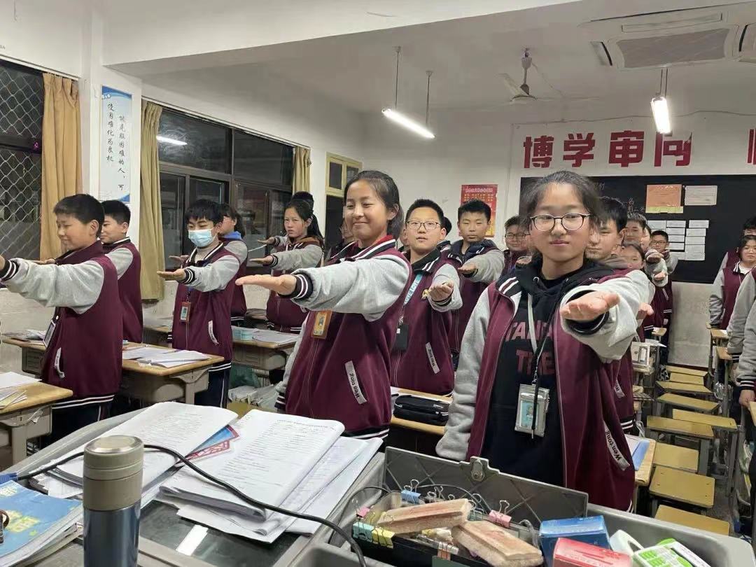 每晚八点,校园里《笑起来真好看》的歌声响起来了,学生们跟随着音律,在座位上做起来了座位操。座位操,放松了心情,舒展了身体,提高了学习效率。文通中学关爱学生身体健康,关爱学生健康成长,“校园座位操”就是最好的诠释。