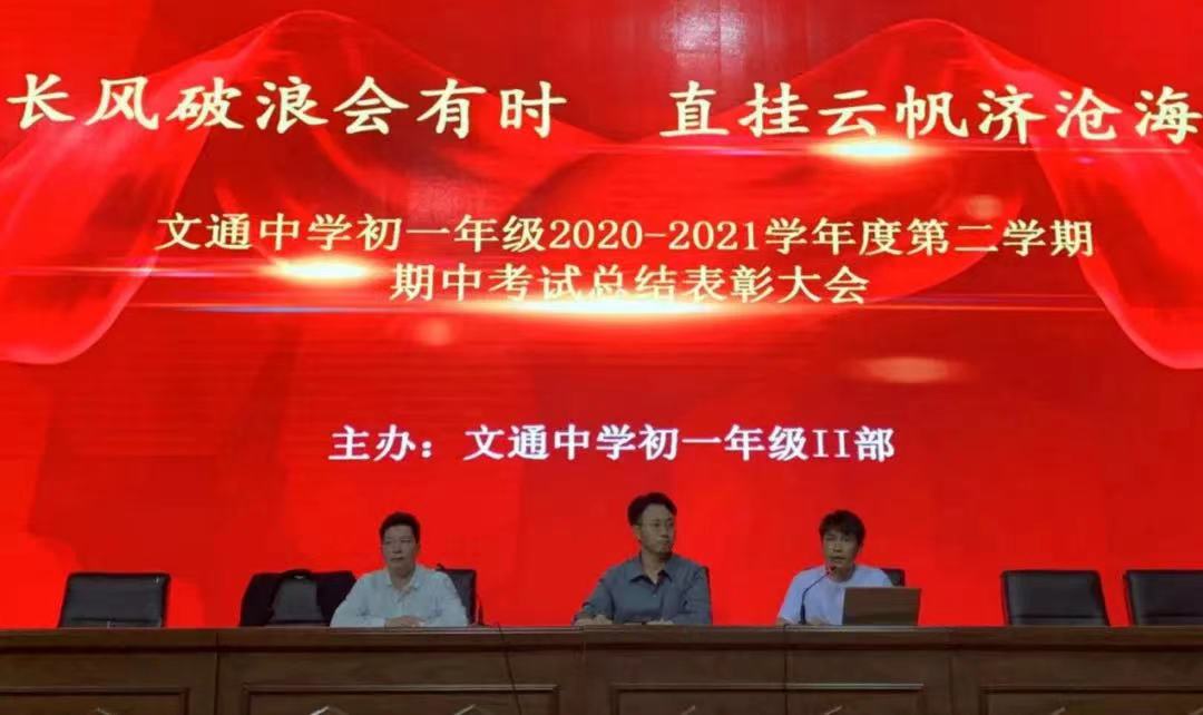5月9日晚七点,文通中学初一年级II部期中考试总结表彰大会在校楚王馆隆重召开。参加本次大会的有年级主任姜海勇、年级教学主任王永利、年级德育主任吉洪青以及全体班主任和学生。
