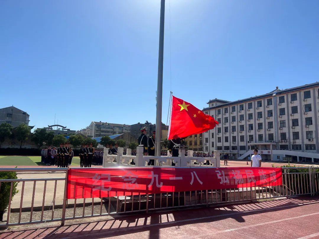 9月19日,上午9时30分,五星红旗冉冉升起,初二、初三全体师生在校操场举行“九一八”默哀悼念活动。
