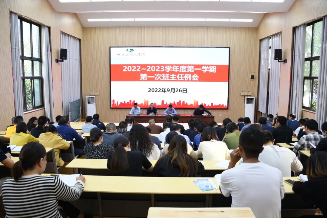 为进一步加强学校班主任队伍建设,探索班级工作的新方法,创新班级管理的新思路,促进班主任专业化成长,整体提升班主任的专业素养和管理水平,9月26日下午,我校在阶梯教室召开新学期第一次班主任例会。龚鹏程校长,王贯飞副校长、全体班主任参加例会。会议由德育处曹军副主任主持。
