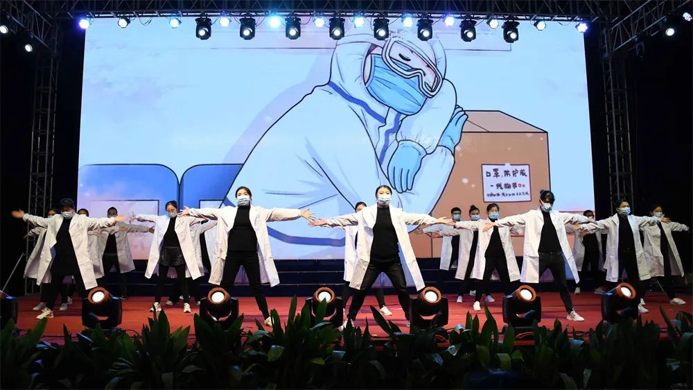 文艺汇演在高一Ⅰ部大合唱《春风十万里》和《我的中国心》拉开帷幕。本次文艺汇演节目形式多样,精彩纷呈,有大合唱、诗朗诵、小品、舞蹈、舞台剧等。高二Ι部小品《全民运动会》情节搞笑、富有新意但又引人深思。高三Ι部的舞台剧《归途•呼唤•筑梦》将全场人的回忆一下拉回了新中国的诞生,悠悠地讲述了祖国的崛起,国人的奋斗和团结以及对祖国未来的可期。初二Ⅱ部的《最美逆行者》用无声的肢体语言舞出了白衣天使们的高尚纯洁和无私奉献,抒发了全国人民对白衣天使们真诚的尊重及感激之情。《不忘初心》、《党旗飘扬的方向》、《华夏》等节目都展示了教职工的多才多艺以及浓烈的爱国情怀。