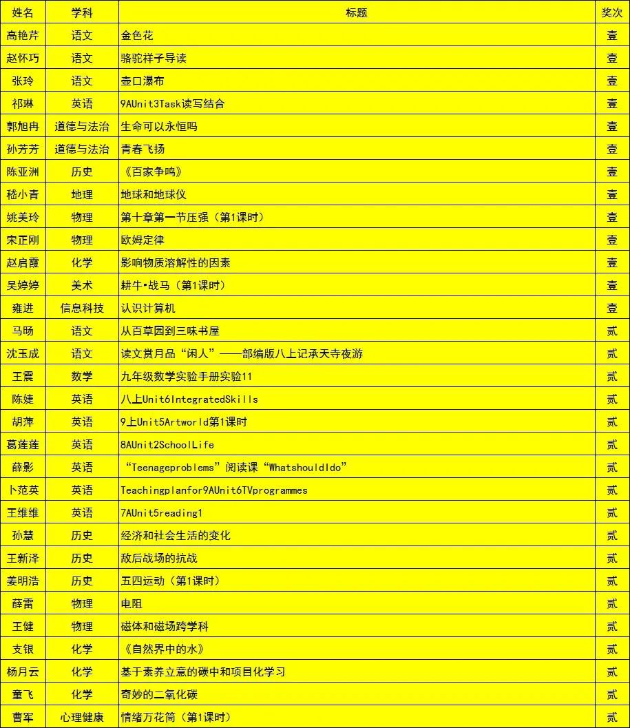 近日,2022年度淮安区年度教学设计、教学论文评选结果揭晓,我校多名老师的教学论文和教学设计在评选中获得佳绩,其中高艳芹、赵怀巧、张玲等13位老师获教学设计一等奖,马瑜罄、王永利、张楠等16位老师获教学论文一等奖。另有多名老师获二等奖。