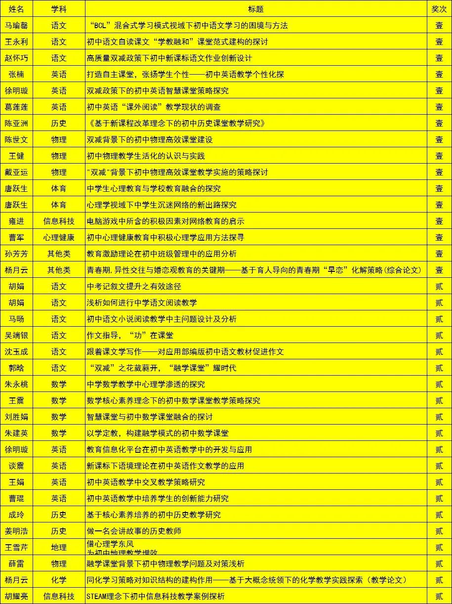 优秀教学论文评选结果