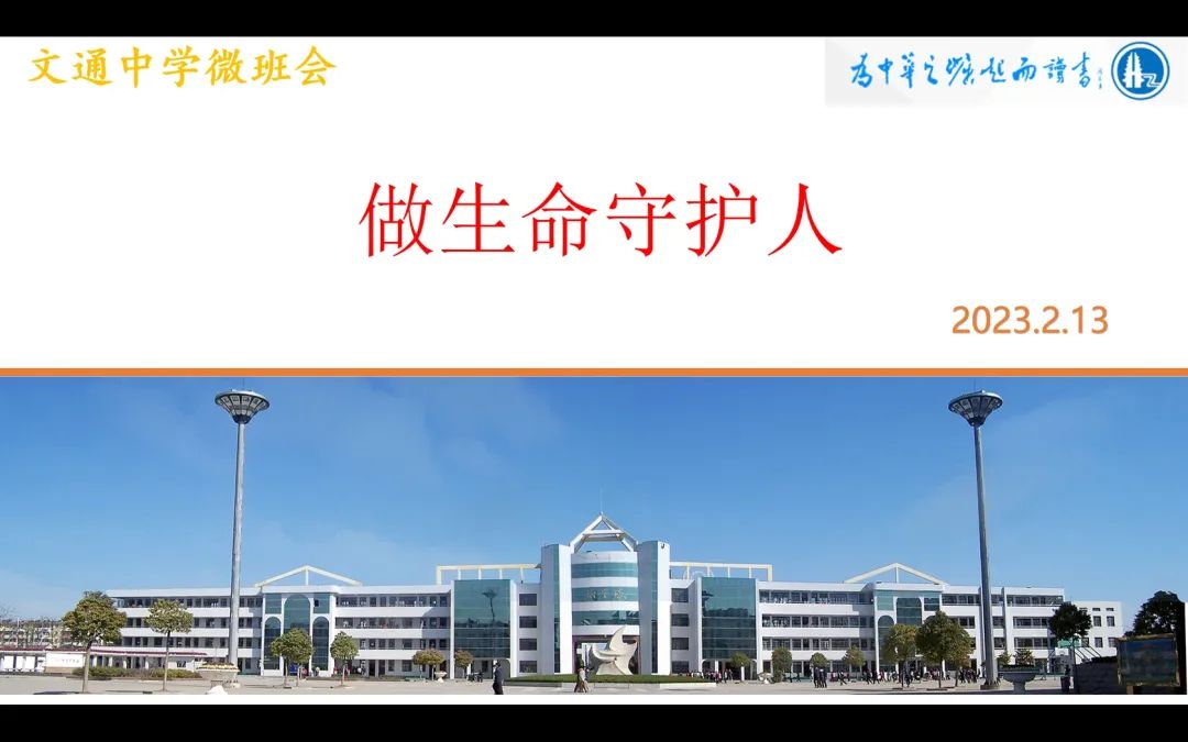 为引导学生树立正确的生命观,学会科学的心理调试方法,增强“阳光自己每一刻,关爱他人每一天,健康幸福过一生”的意识,真正做到认识自己,珍爱自己,善待生命,关爱他人,乐观进取,健康成长!2月13日下午,文通中学德育处在全校开展了“做生命守护人”生命教育主题的德育微班会。
