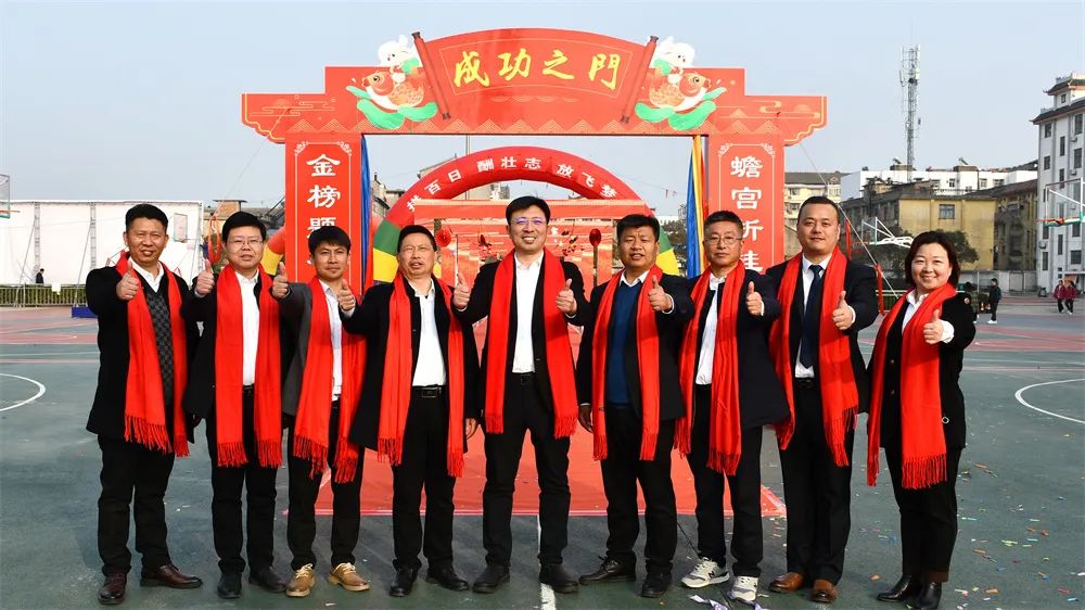 下午15时28分,全体初三老师集体整队,在龚鹏程校长、王润洲副校长、王贯飞副校长、王成美副校长和王永利主任等领导的带领下踏上红毯,跨成功之门。