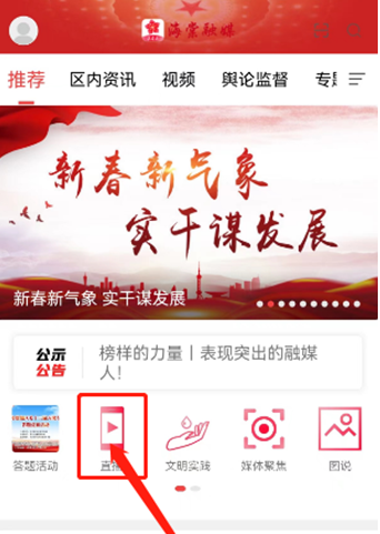 可扫码下载“海棠融媒”APP,点击首页“直播”进入直播间。