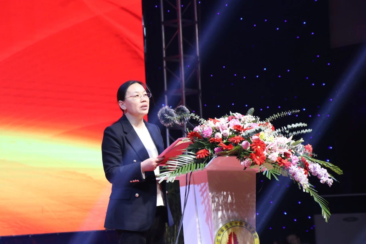 她表示,区委区政府始终关注支持淮中教育集团发展,江苏省淮安中学、淮安市文通中学作为优质的高初中品牌学校,秉承了百年淮中的文化理念,始终以先进的管理理念,高品质的育人实践,创造高质量的办学效益,得到了家长、同行、社会的充分认可与高度评价。她希望广大教师争做“四有好教师”,当好“四个引路人”,在区委区政府的正确领导下,在社会各界的关心支持下,淮中教育集团一定会在新的一年跃上新的台阶,创造新的辉煌。