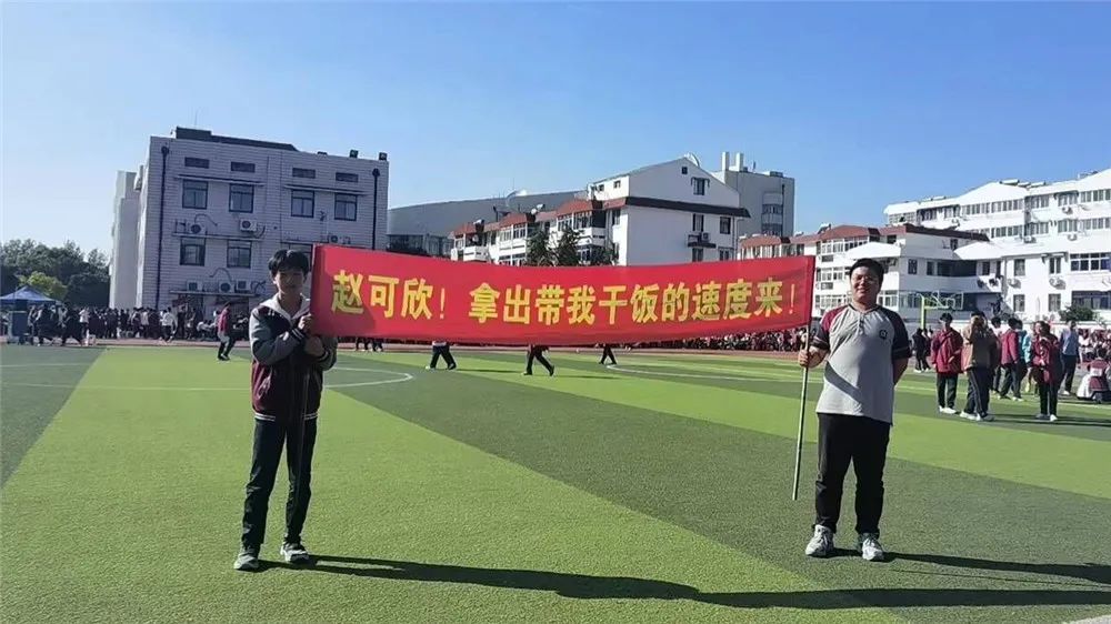 “自古逢秋悲寂,我言秋日胜在春朝”,秋天,正黄金时节,正信心长成的时节,正激情运动的佳月。初二Ⅱ部(14)的尹宇振、朱鹏儒、熊铃榭、陈绍和加油!在这秋气飒爽的佳月里,洒汗于径,踏脚于地。你们的欢笑将在赛场上飞扬,你的光辉将在班级中流传。由你们验证14 班的口号--奋勇前行,永不言败。