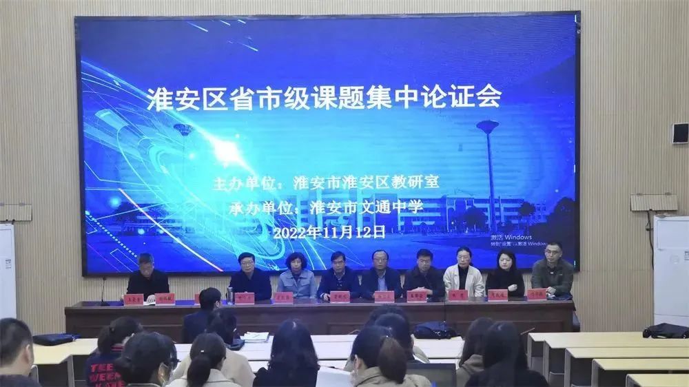 秋意尚存黄叶落,冬韵如约结硕果。教育科研有助于提升教师的专业水平,推进学校教育品质的发展,11月12日下午,淮安区省市级课题集中论证会在我校阶梯教室举行。淮安市教研室、淮安区教师发展中心专家、学校领导和相关课题组成员参加了本次论证会。会议由区教研室王国云副主任主持。