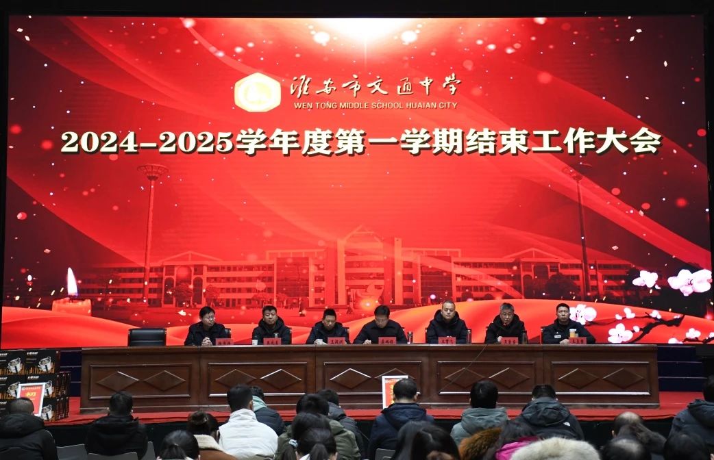 1月17日下午我校在楚王馆召开2024—2025学年度第一学期总结会,韩书洋副校长主持,全体教职工参加。王贯飞副校长总结德育和安全工作,指出一学期来相关工作落实到位,创建安全文明校园,同时对寒假安全工作作安排;王润洲副校长总结教学工作,感谢教师付出,希望继续发扬文通精神迎接挑战;王爱宝副校长总结教科研工作,强调教师假期要学习提升专业能力;龚鹏程校长作总结发言,布置寒假安全、润心、家访等工作并送祝福。新的一年全体文通人将怀揣梦想携手奋进砥砺前行