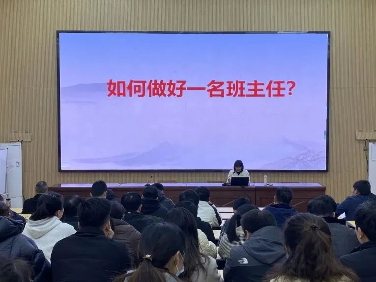南通市优秀班主任、南通市德育工作带头人、海安市优秀教育工作者赵晓丽老师为全体班主任作《如何做好一名班主任》专题培训。培训中,赵老师从开展班主任培训工作、建设良好的班风、激发学生的学习热情、班主任的教育智慧、开好班会课等七个方面进行培训。授课内容丰富、贴合实际、“干货”满满,让班主任对班级工作开展及学生心理健康的表现、诊断和识别有了更深刻的认识。