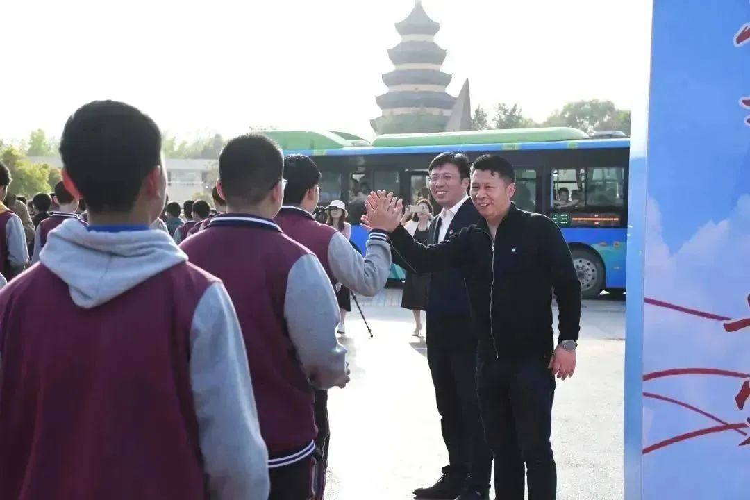 长风破浪会有时,直挂云帆济沧海。校领导带领同学们以中国少年之责任和必胜的决心走向“青春之门”,并合影留念。