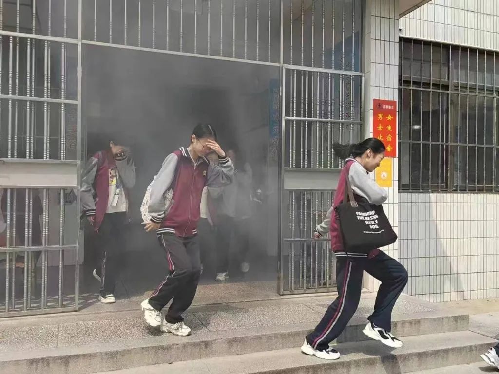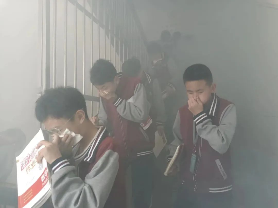 在听到指令的第一时间,住校的同学们紧张而不慌乱,快而有序地用手边所能利用的织物浸水捂住口鼻,防止烟呛,快速逃离现场。当浓烟越来越重的时候,稍慢的同学亦没有明显的焦虑情绪,这得益于我们日常对同学们消防安全教育的落实。