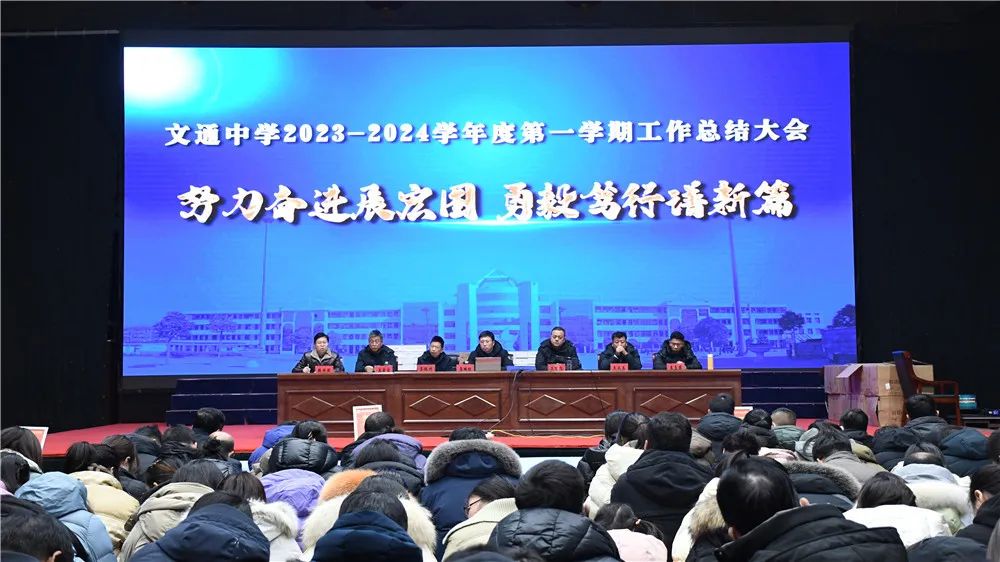 兔影如风留浩荡,龙姿似水荡乾坤。不知不觉中,紧张忙碌而又砥砺深耕的一学期结束了,为更好地总结经验、展望未来,1月26日下午,我校全体教职员工在楚王馆召开了2023—2024学年第一学期工作总结大会。会议由韩书洋副校长主持。